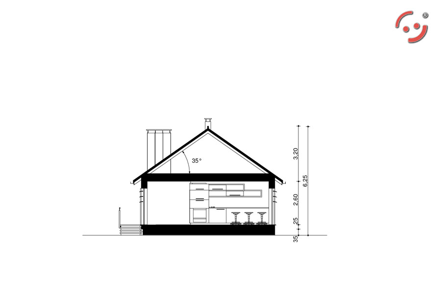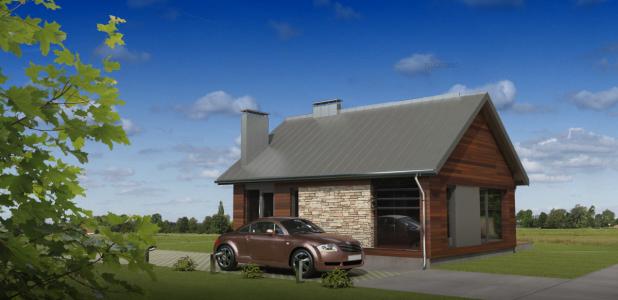 Najmniejszy domek z serii TEC. Pozwala na zagospodarowanie poddasza. Idealny dla singla. Wizualizacje: Rzuty: