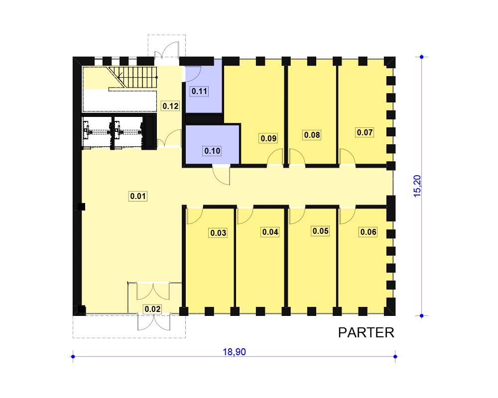 PS-BL-290-40 NOWOCZESNY ENERGOOSZCZĘDNY BIUROWIEC HOTEL PROJEKT KARTY PODSTAWOWE