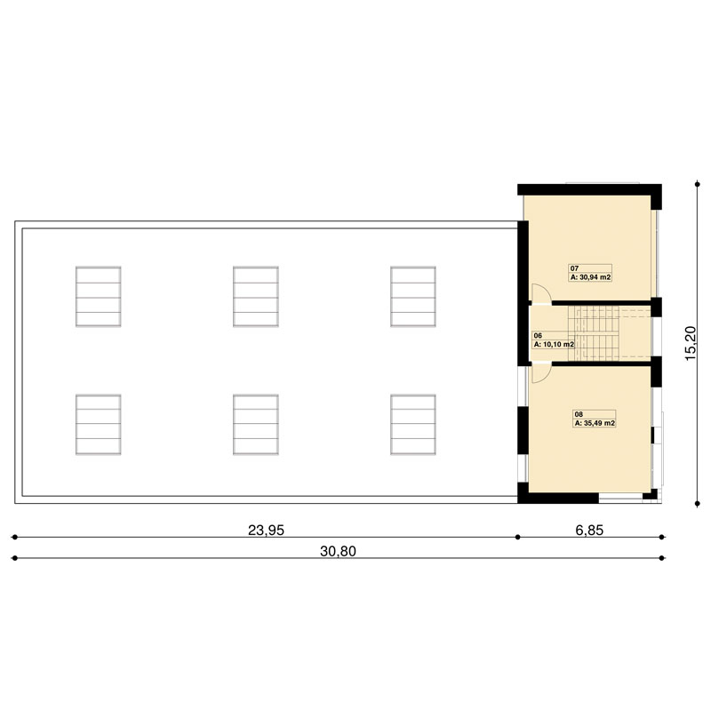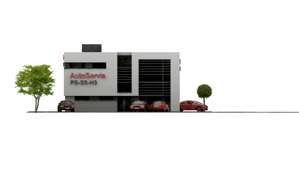 Auto serwis na 6-10 stanowisk oraz część mieszkalno-usługowa. Budynek może również pełnić funcję sklepu lub magazynu. Wizualizacje: Rzuty:
