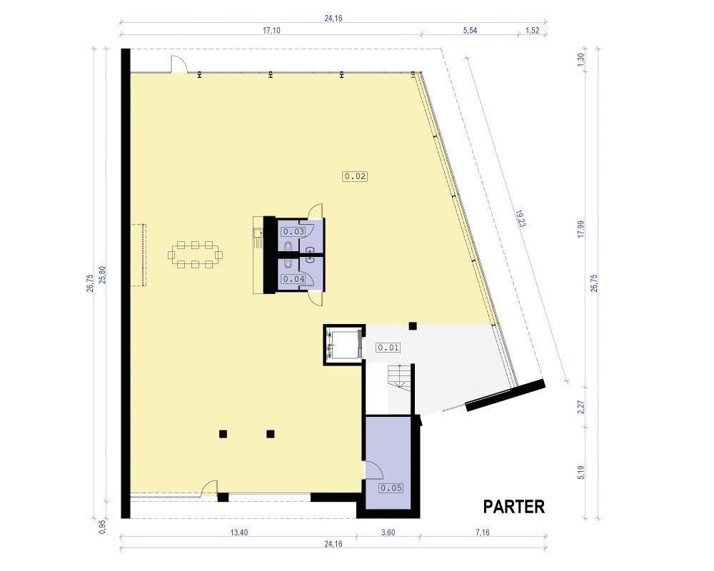 Projekt wymaga indywidualnych ustaleń przeznaczenia obiektu oraz wysokości pomieszczeń.