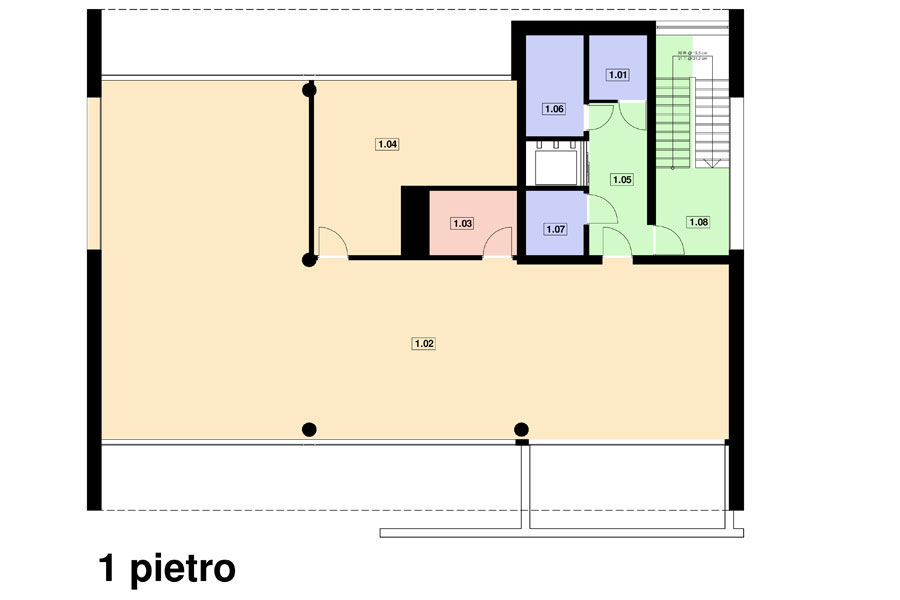 Projekt budynku usługowego - biurowego, do dowolnej adaptacji na odpowiednią funkcję w zależności od potrzeb klienta. Na parterze znajduje się jednoprzestrzenne pomieszczenie, oraz część sanitarno - socjalna z komunikacją na piętro. System konstrukcyjny pozwala na dowolny podział pomieszczeń. Budynek idealnie nadaje się do zabudowy w aglomeracji miejskiej, jak również na obrzeżach miast, przy halach fabrycznych. Dostępne inne wersje budynku pomniejszona o jedno piętro a także wersje mniejsze, większe, z garażem oraz możliwoscią dostawienia do istniejących hal fabrycznych, produkcyjnych, magazynowych.