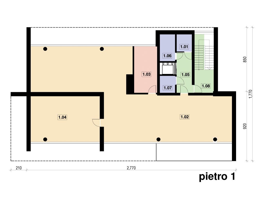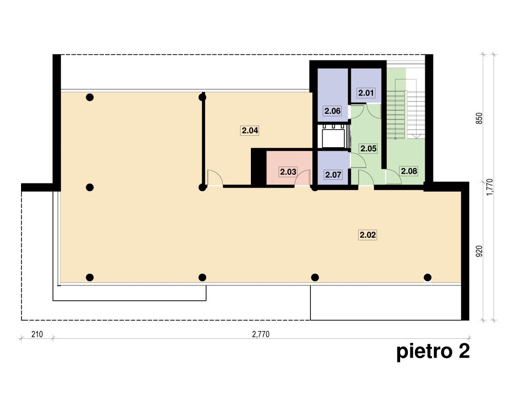 Projekt budynku usługowego - biurowego, do dowolnej adaptacji na odpowiednią funkcję w zależności od potrzeb klienta. System konstrukcyjny pozwala na dowolny podział pomieszczeń. Budynek idealnie nadaje się do zabudowy w aglomeracji miejskiej, jak również na obrzeżach miast, przy halach fabrycznych. Dostępne różne wersje budynku, także z garażem oraz możliwoscią dostawienia do istniejących hal fabrycznych, produkcyjnych, czy magazynowych.