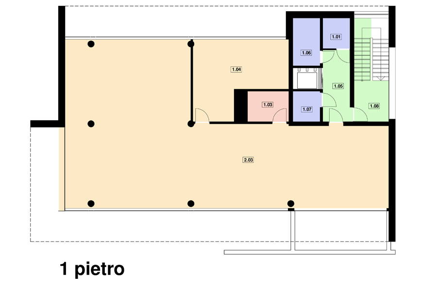 Projekt budynku usługowo - biurowego, do dowolnej adaptacji na odpowiednią funkcję w zależności od potrzeb klienta. Na parterze znajduje się jednoprzestrzenne pomieszczenie, oraz segment sanitarno - socjalny oraz komunikacja na piętro. System konstrukcyjny pozwala na dowolny podział pomieszczeń. Budynek idealnie nadaje się do zabudowy w aglomeracji miejskiej, jak również na obrzeżach miast, przy halach fabrycznych. Dostępne inne wersje budynku - z dodatkowym piętrem, a także mniejsze, większe, z garażem oraz możliwoscią dostawienia do istniejących hal fabrycznych, produkcyjnych, magazynowych.