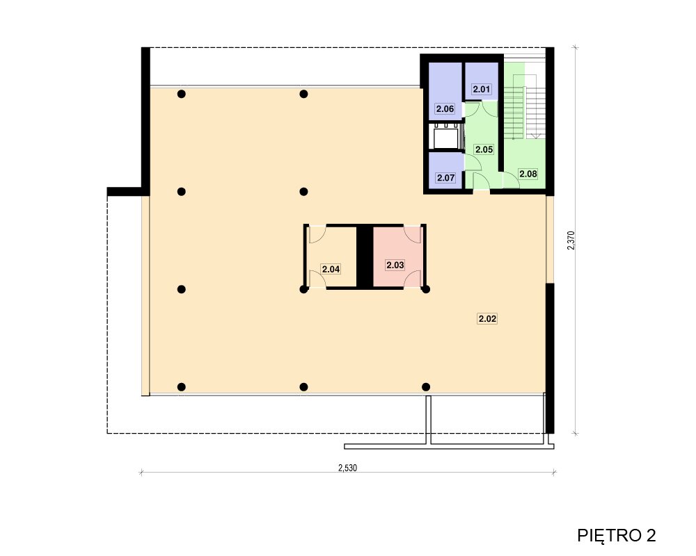 Projekt budynku usługowego - biurowego, do dowolnej adaptacji na odpowiednią funkcję w zależności od potrzeb klienta. System konstrukcyjny pozwala na dowolny podział pomieszczeń. Budynek idealnie nadaje się do zabudowy w aglomeracji miejskiej, jak również na obrzeżach miast, przy halach fabrycznych. Dostępne różne wersje budynku, także z garażem oraz możliwoscią dostawienia do istniejących hal fabrycznych, produkcyjnych, czy magazynowych.