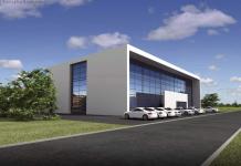 Projekt budynku biurowego lub usługowego z garażem podziemnym.