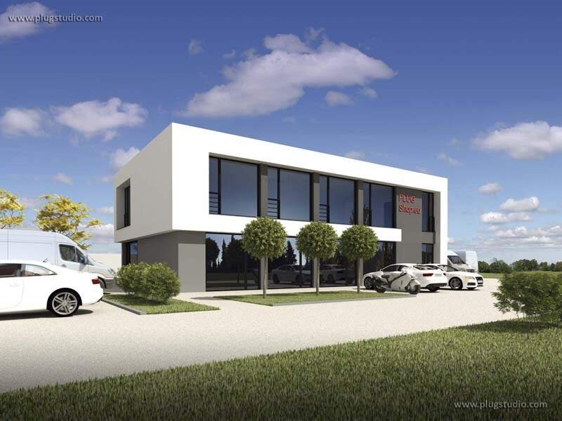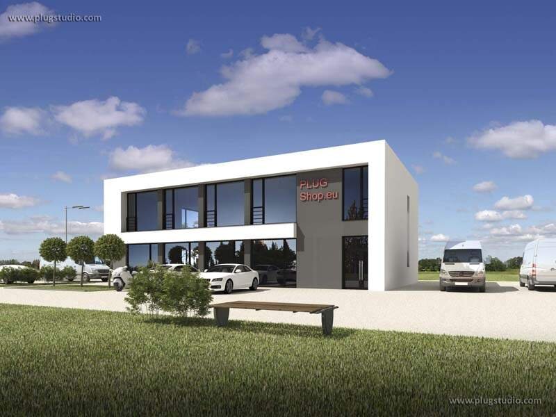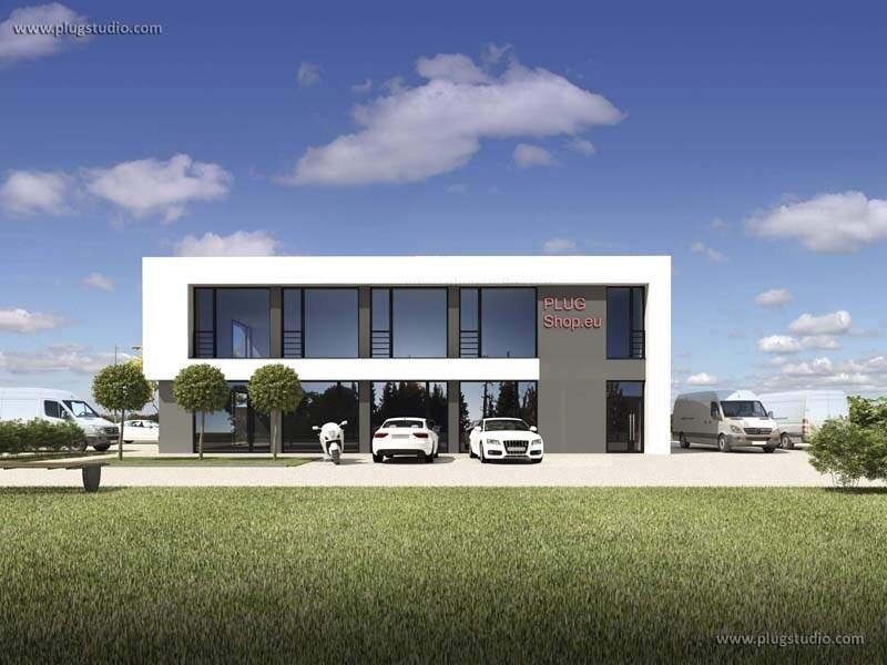 Budynek zaprojektowany jako część usługową - biuro, sklep, pawilon itp przy isteniejącej hali / magazynie.