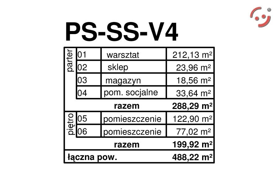 powierzchnia netto (po podłodze): 488,22 m2