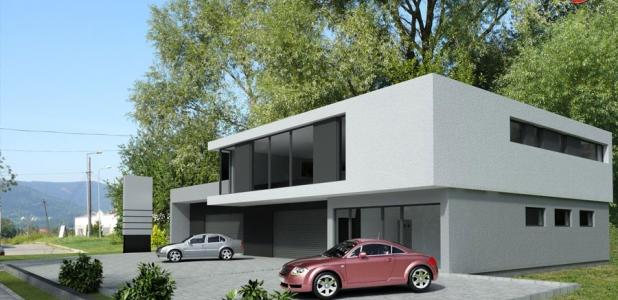 Po zamianie bram garażowych na stolarkę okienną, budynek może spełniać funkcję salonu samochodowego lub innego pawilonu handlowo - usługowego.