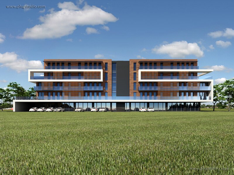 Projekt nowoczesnego budynku wielorodzinnego serii DA przeznaczony dla deweloperów. Wewnątrz przestrzeń, którą można podzielić na wiele sposobów, w zależności od potrzeb klienta można wydzielić mieszkania o różnej wielkości. Budynek posiada opcję garażu podziemnego.