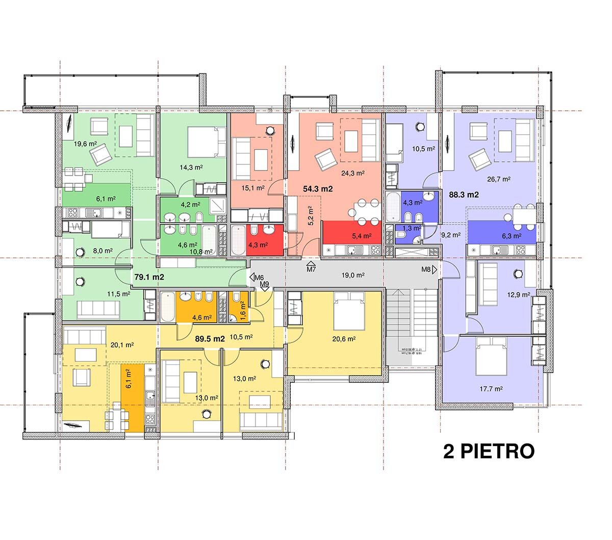 Projekt ma kilka wersji podziału na lokale (10-22 lokali).