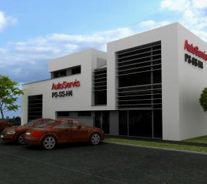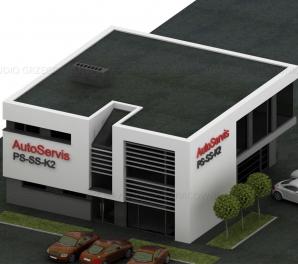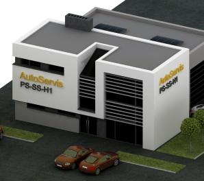 Auto serwis na 4-6 stanowisk oraz część mieszkalno-usługowa.