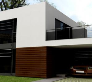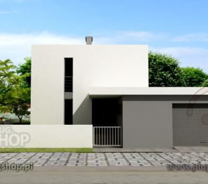 Projekt nowoczesnego domu jednorodzinnego ze spadzistym dachem.